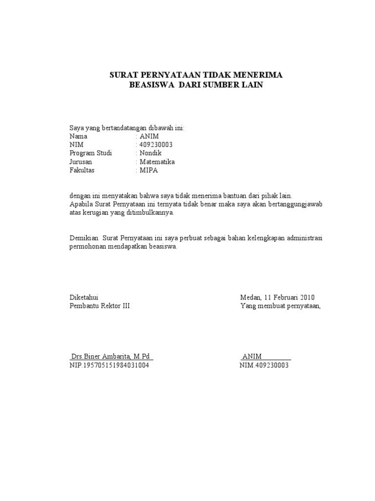 Home » Without Label » Format Surat Bagi Pihak / Surat Keterangan Tidak Sedang Menerima Beasiswa Dari Pihak ... - Contoh surat kiriman rasmi via www.scribd.com.